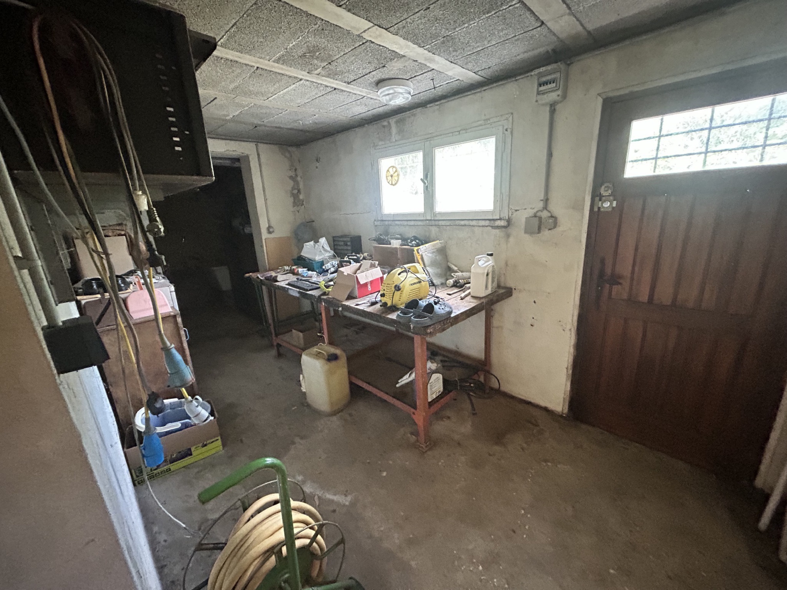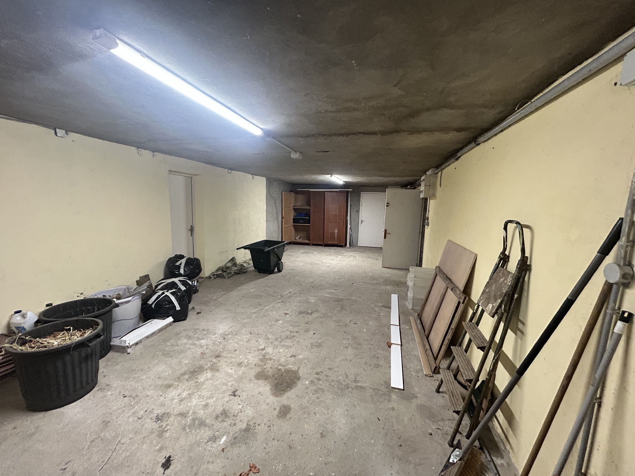 Un grand garage avec espace chaufferie et buanderie
