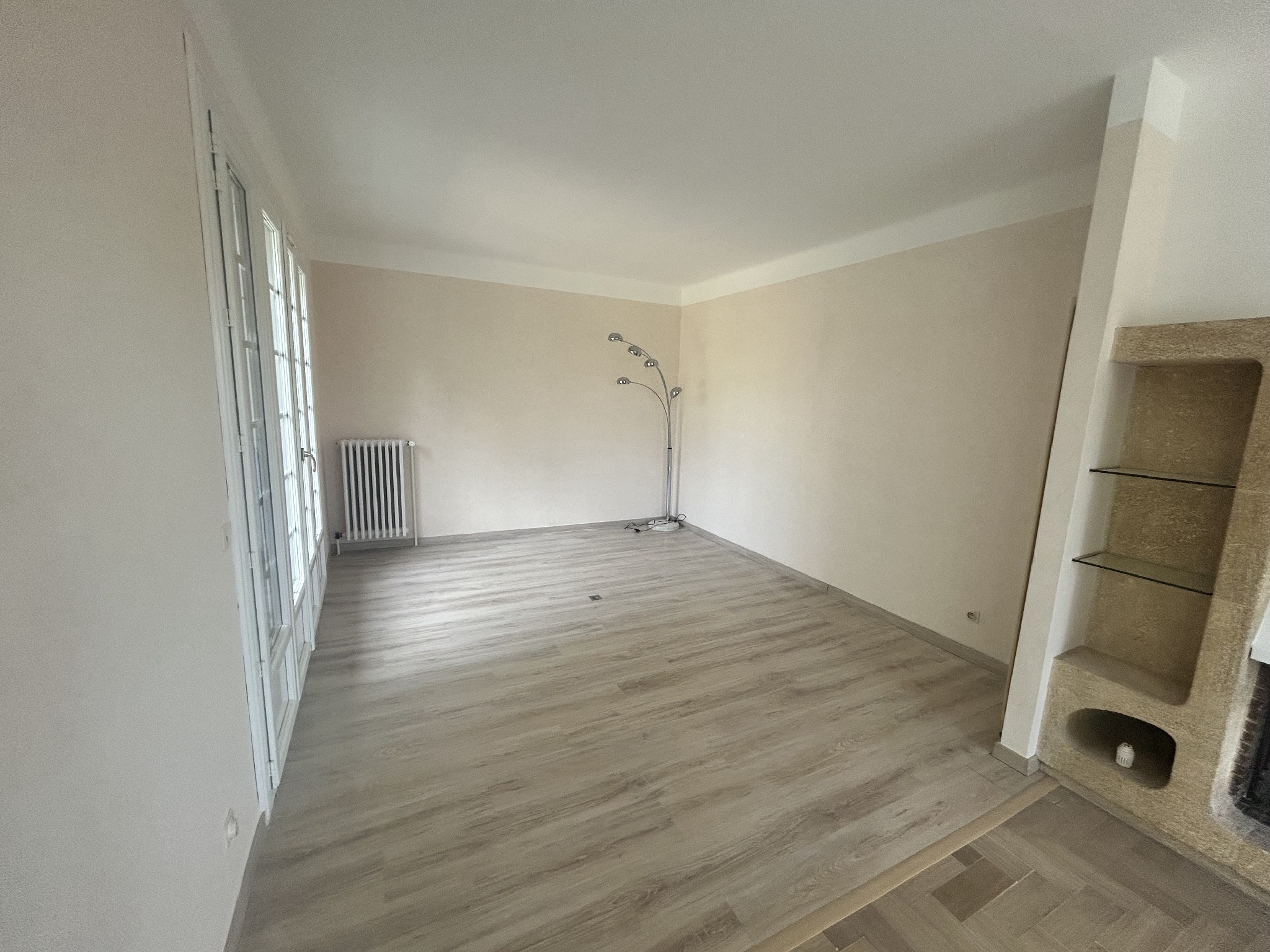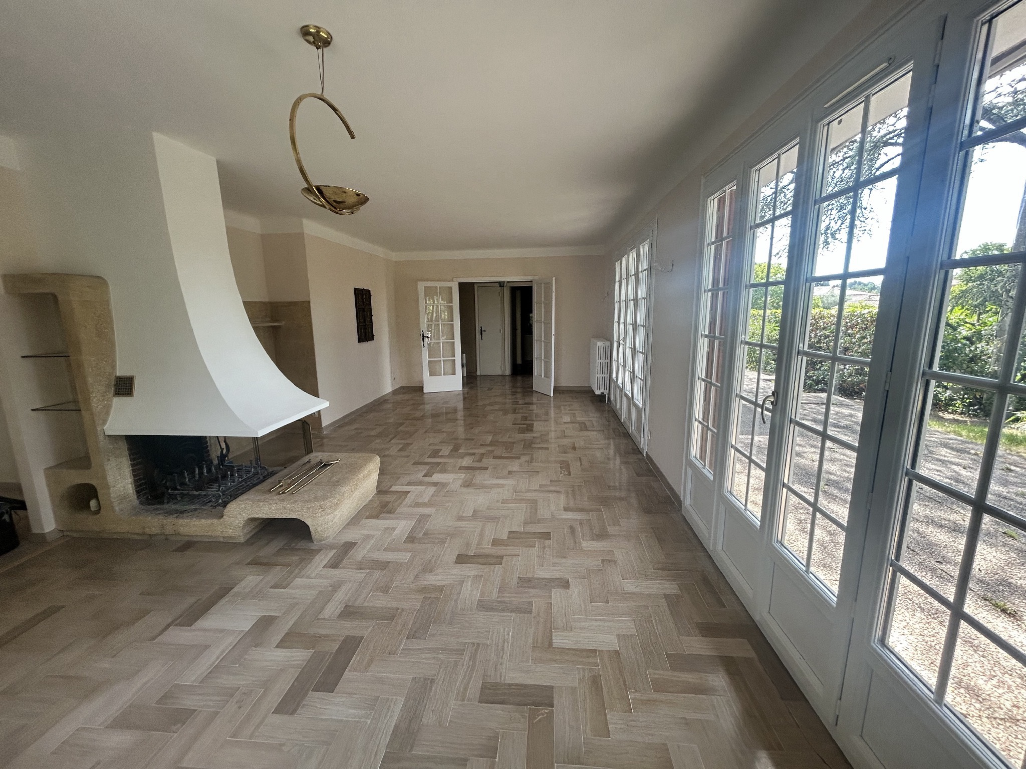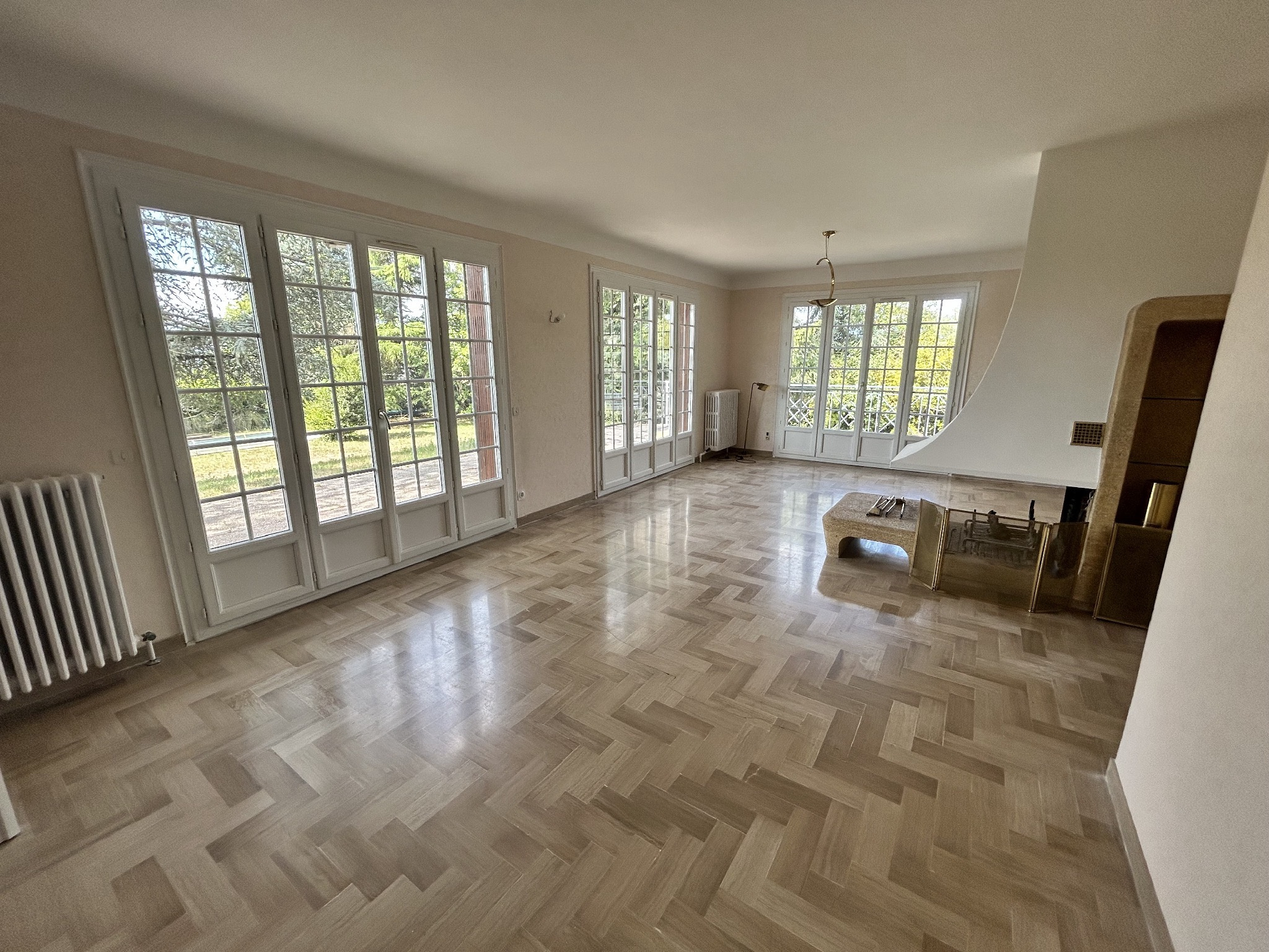 Un vaste salon/séjour lumineux de 50 m² avec cheminée