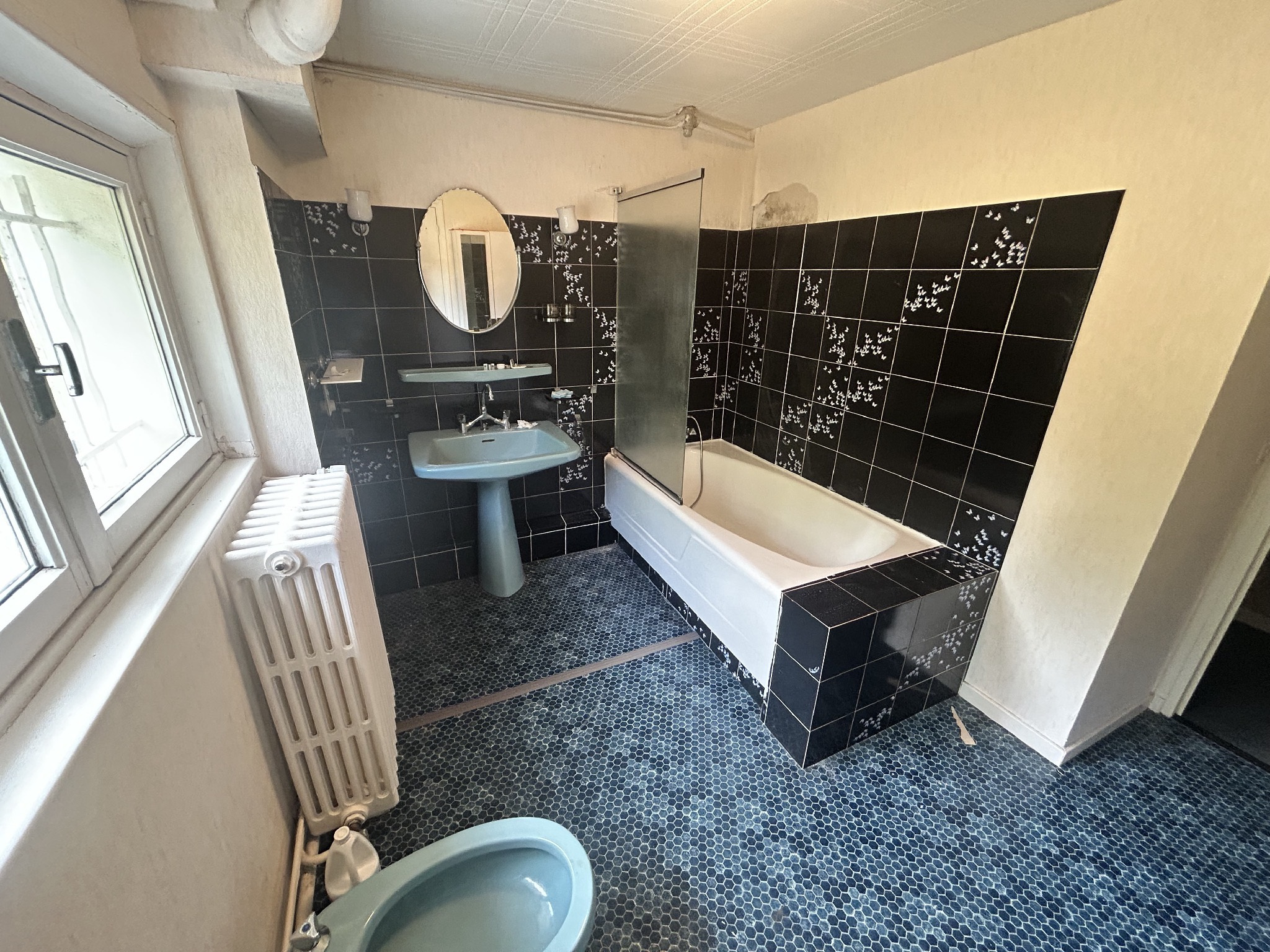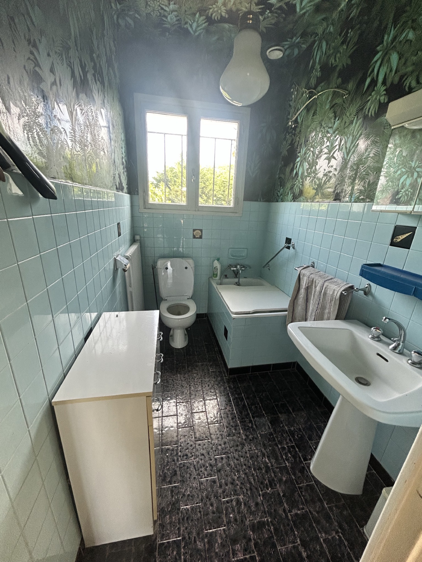 Une salle de bain avec WC