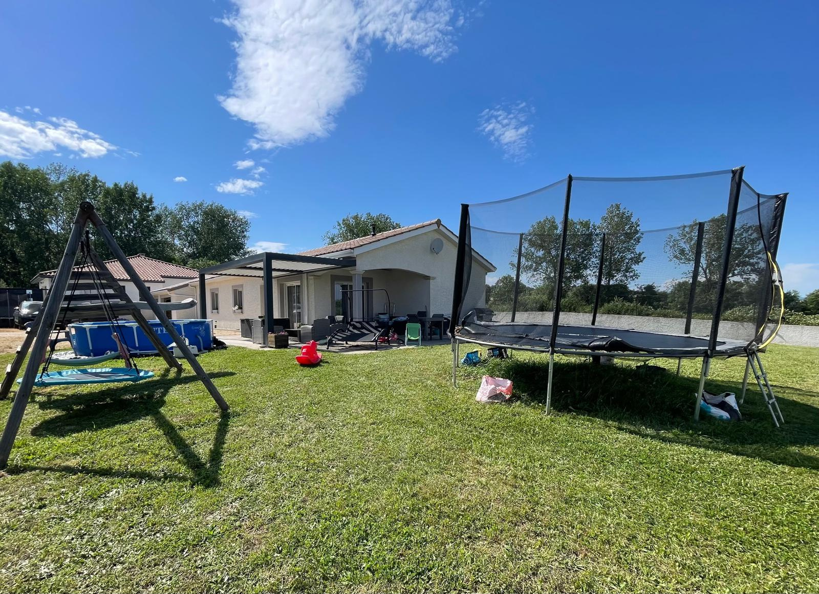 A l'exterieur, une belle terrasse avec une pergola bioclimatique de 18 m2 vous attend pour des soirées d'été mémorables.Vous pourrez profiter de ce havre de paix, tout en étant proche du charmant village de Quintenas et de toutes ses commodités.