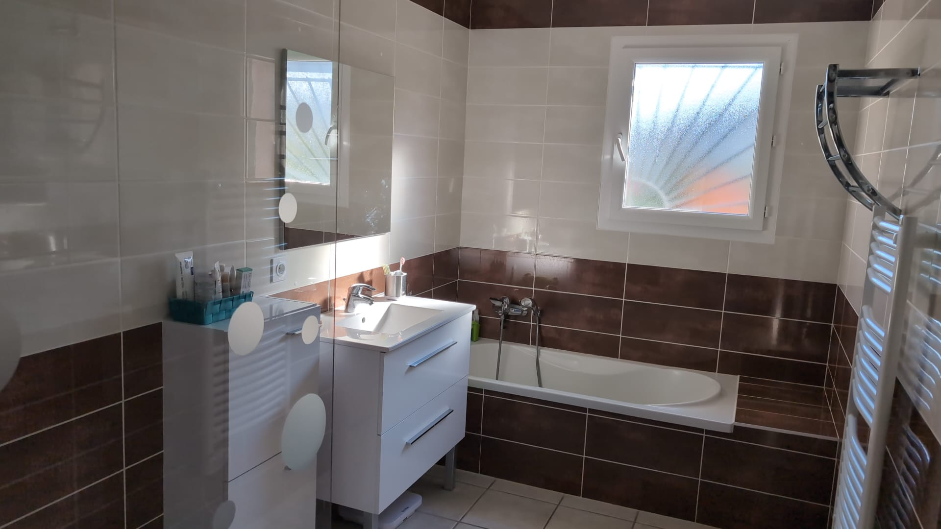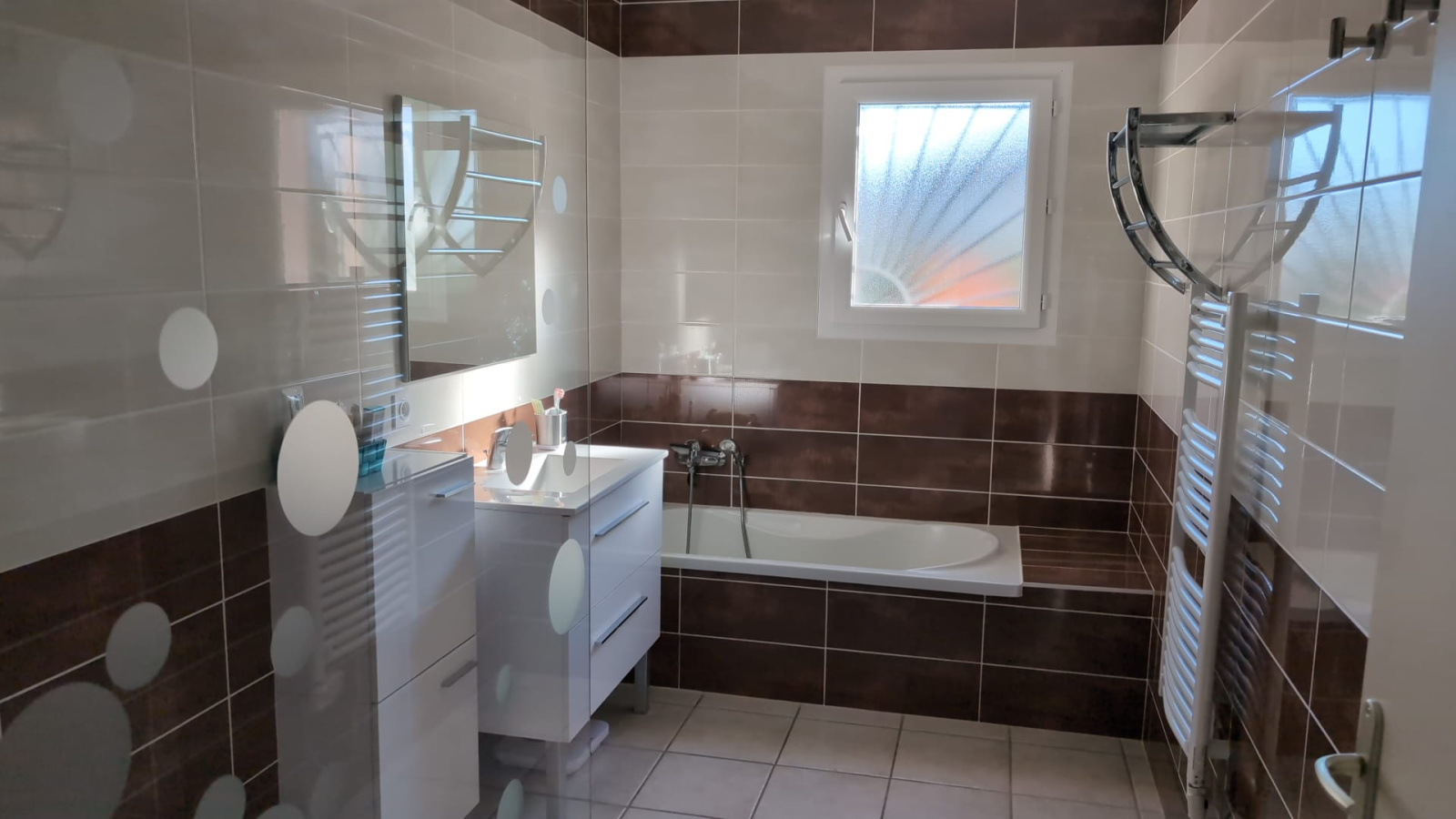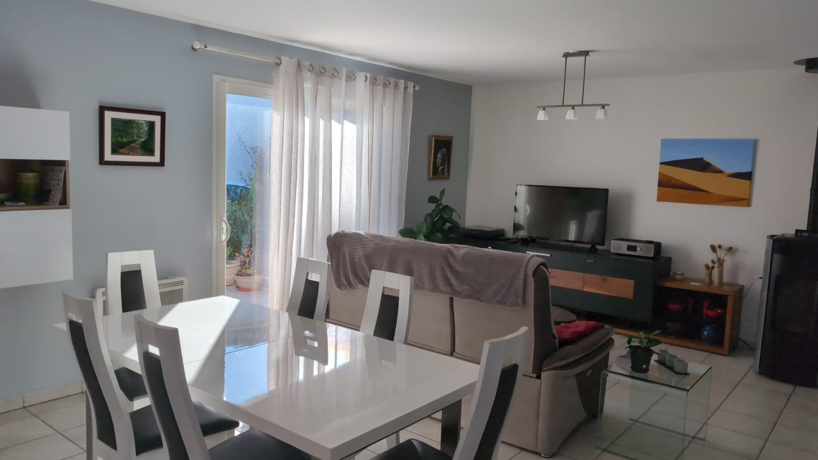 Elle se compose d'un hall d'entrée avec vestiaire, un séjour cuisine équipée de 38m², 3 chambres d'environ 11,50m² avec placards, une salle de bain(baignoire et douche) et wc.