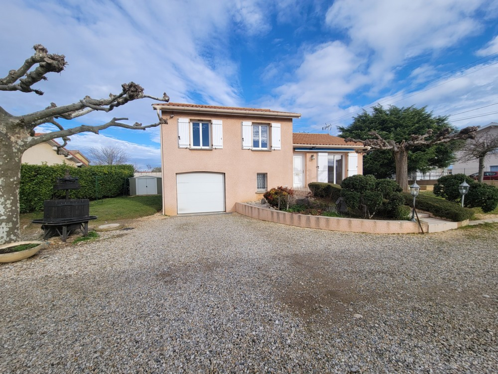 Vous profiterez également d’un terrain bien entretenu, clos et arboré de 773 m², avec portail électrique.
