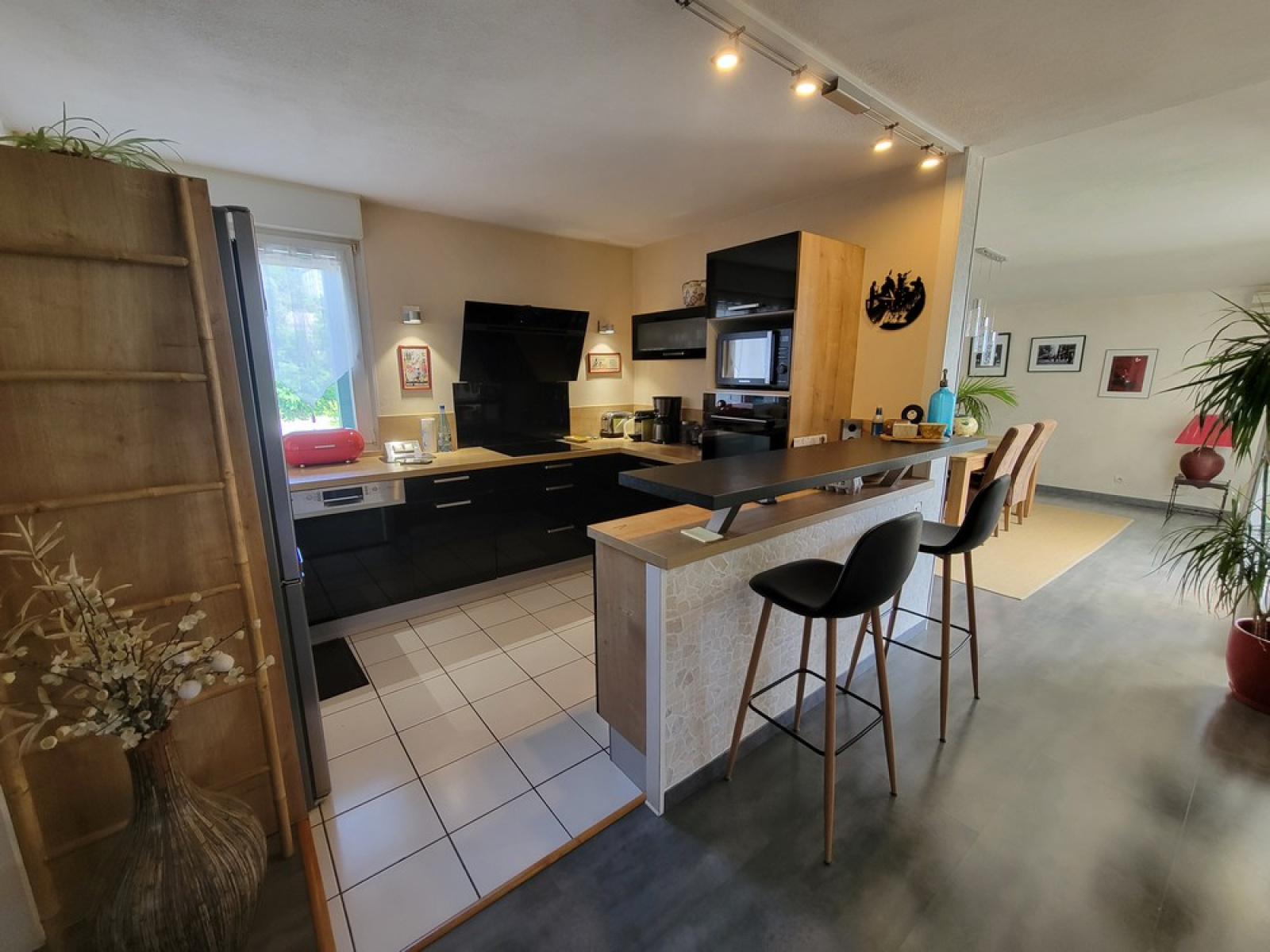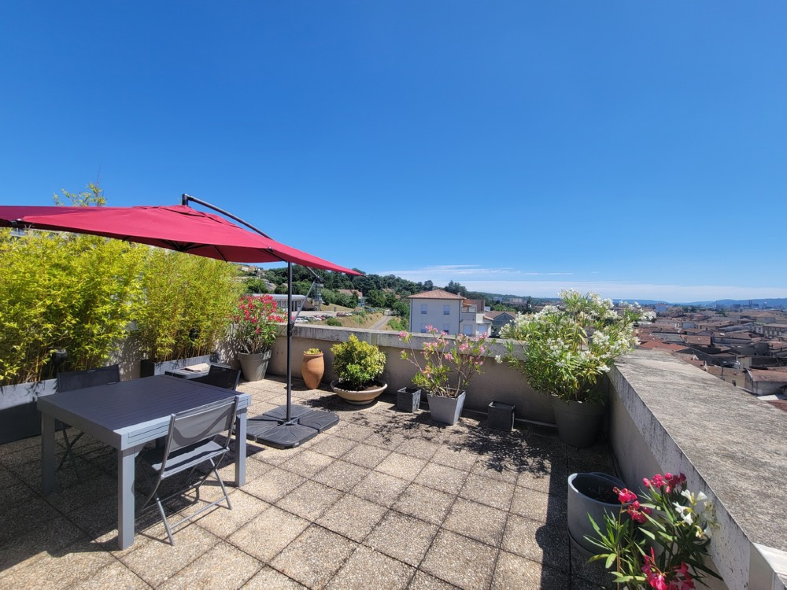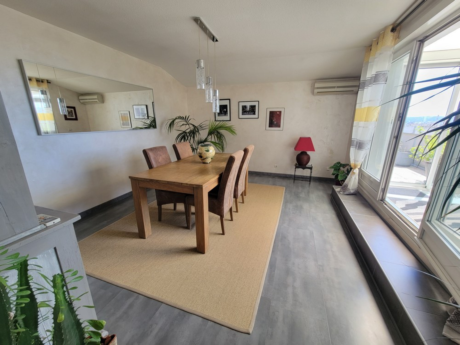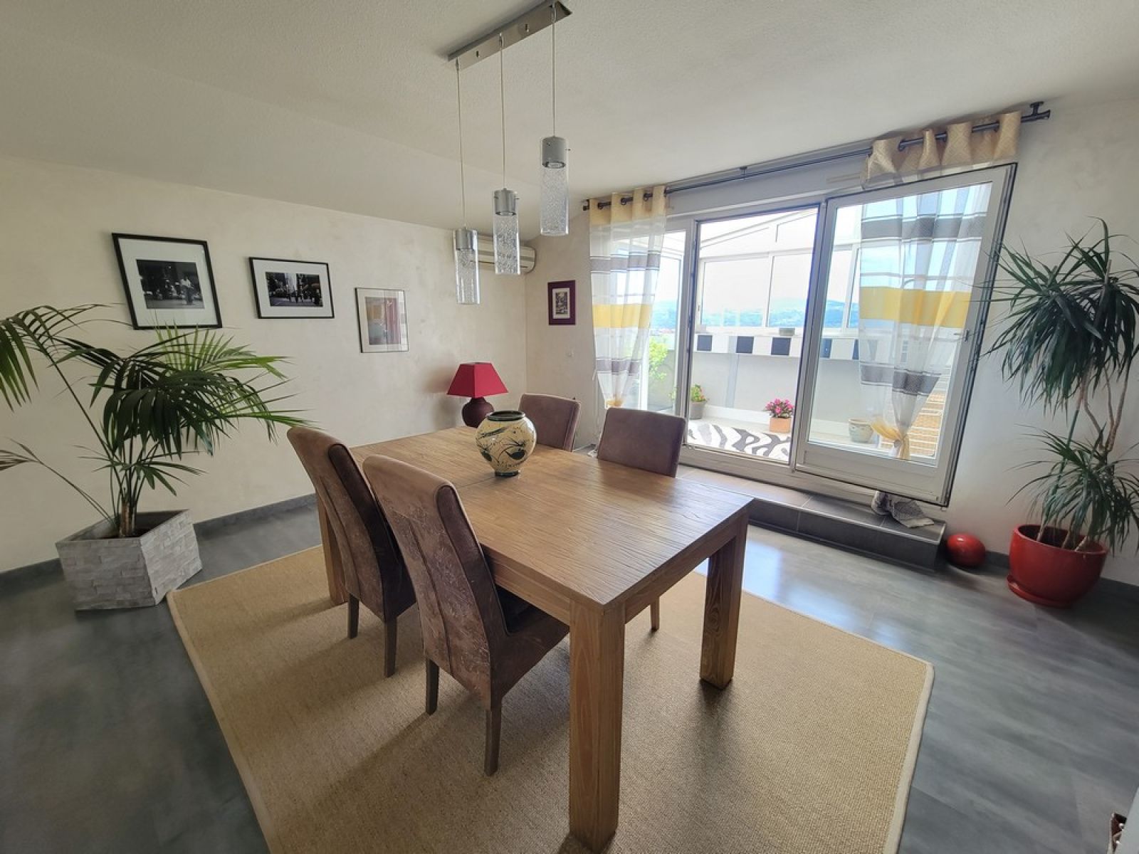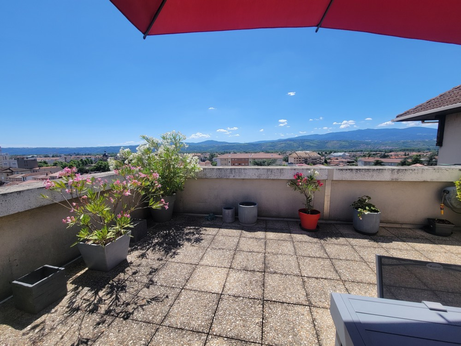 Au 1er niveau : un hall avec placard, une cuisine équipée récente, un grand salon lumineux avec balcon, une salle à manger donnant sur une loggia et sur la terrasse avec vue dégagée sur le Pilat, un wc.