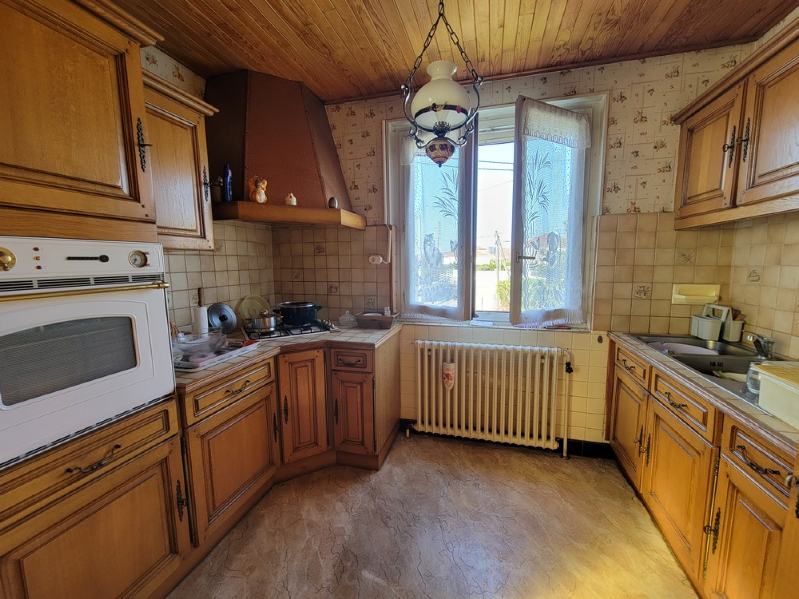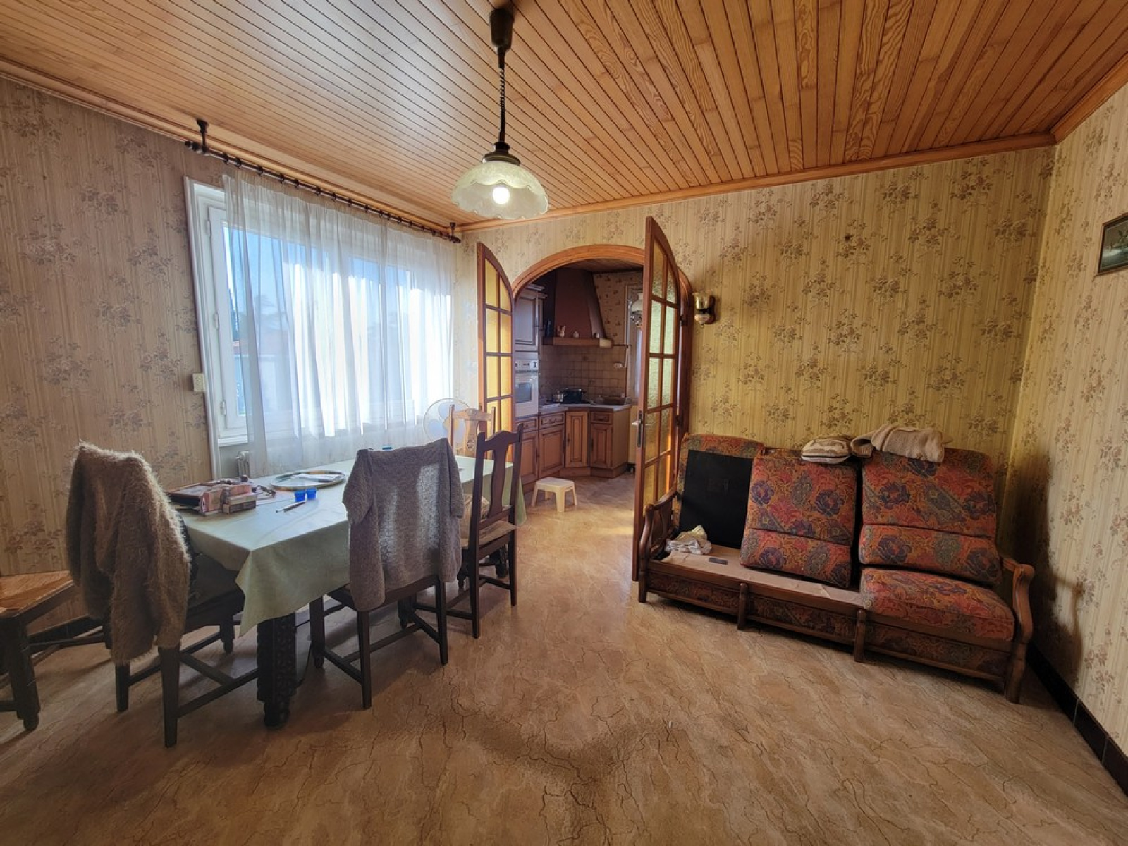 Maison individuelle composée, à l'étage, d'une surface habitable d'environ 72 m² comprenant un hall, une cuisine équipée ouverte sur un séjour, trois chambres, une salle d'eau et un wc séparé.