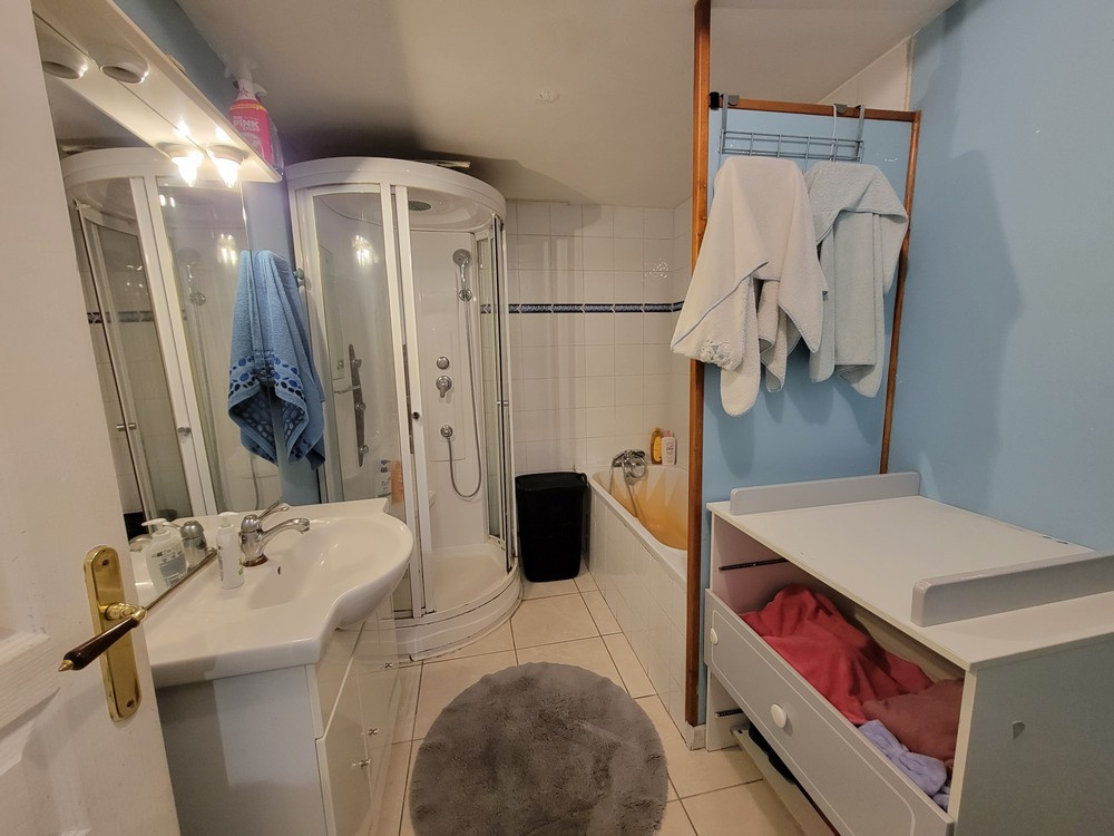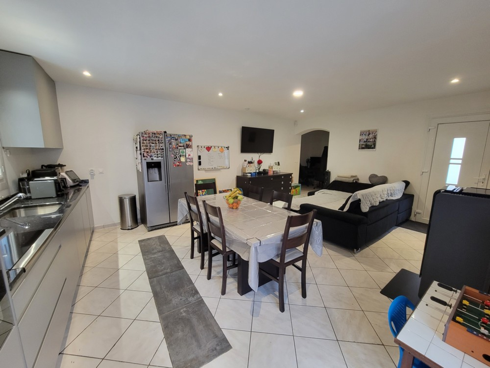 Au rez-de-chaussée, la maison dispose d’une belle pièce de vie avec une cuisine entièrement équipée récente, d’une buanderie, d’une grande chambre avec placard, d’une salle de bain, d’un WC indépendant ainsi que d’un garage spacieux de 28 m².