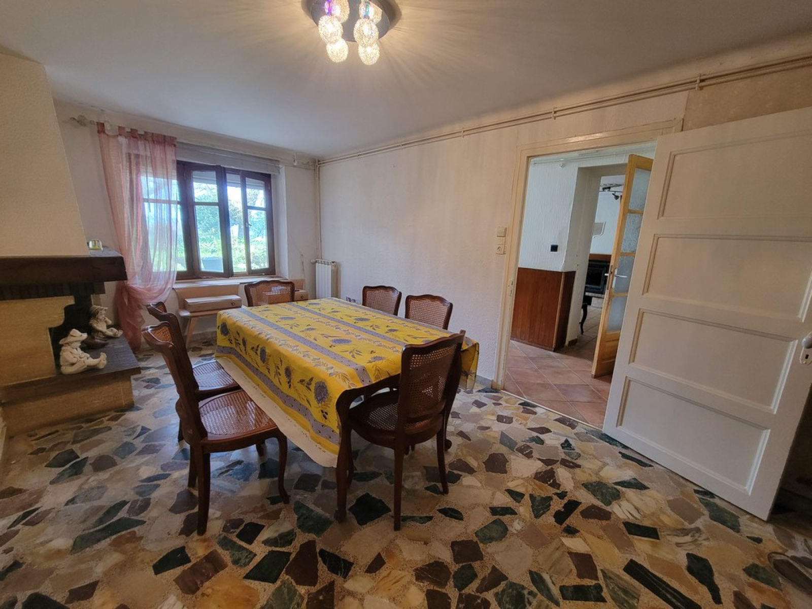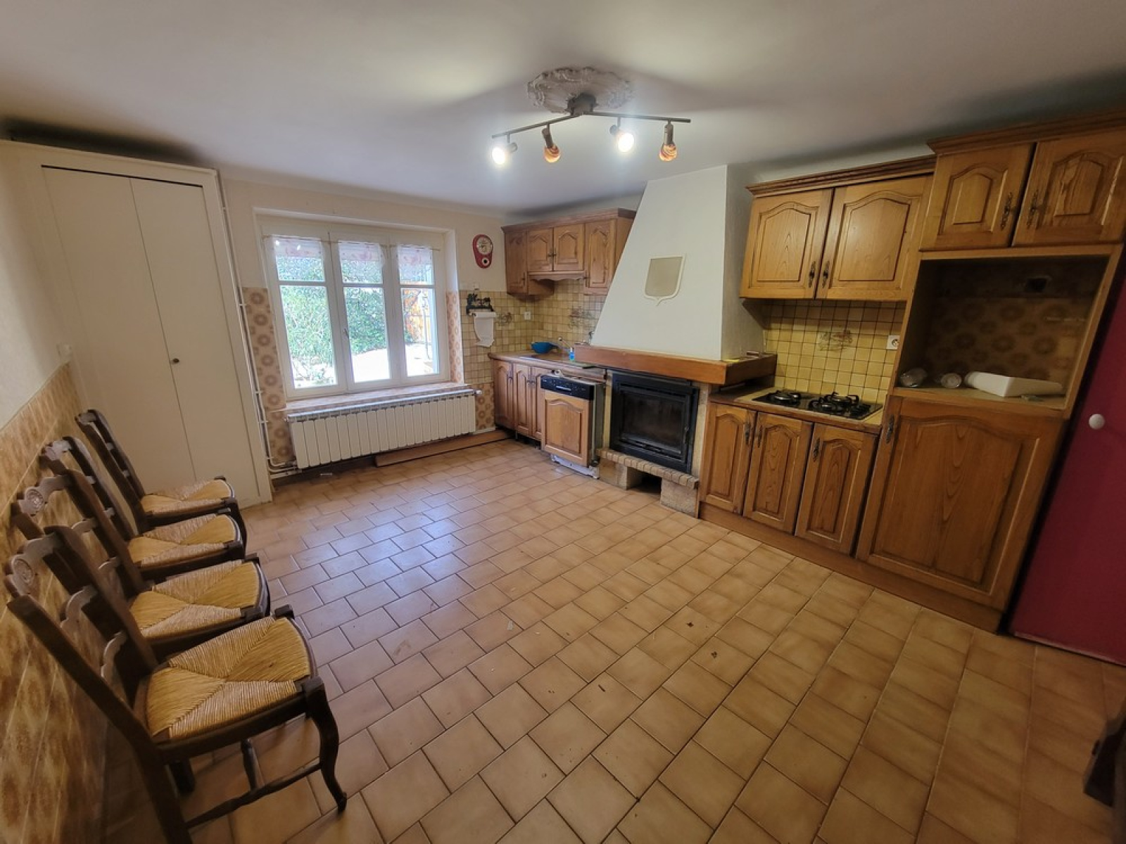 Chauffage par chaudière gaz récente et cheminées bois.